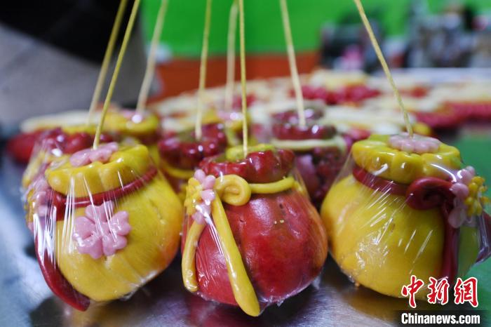 在我國(guó)北方地區(qū),大多有著“過(guò)大年,發(fā)面蒸花饃”的年俗,其中“發(fā)”,寓意新的一年發(fā)家發(fā)財(cái),“蒸”寓意來(lái)年日子蒸蒸日上。臨近春節(jié),河北省定州市民間手藝人蘇利榮和同事們也忙碌了起來(lái),憑借著專(zhuān)業(yè)的面點(diǎn)技術(shù),一塊塊柔軟的面團(tuán),在她們的手中變身為造型各異的創(chuàng)意花饃。為迎接龍年的到來(lái),她們專(zhuān)門(mén)設(shè)計(jì)蒸制了帶有“龍”元素的花饃,“龍鳳呈祥”“金龍送?!薄褒埬甏蠹薄螒B(tài)各異、喜慶吉祥的花饃傳遞著濃濃的年味兒。(文/李玉素 圖/白永民)