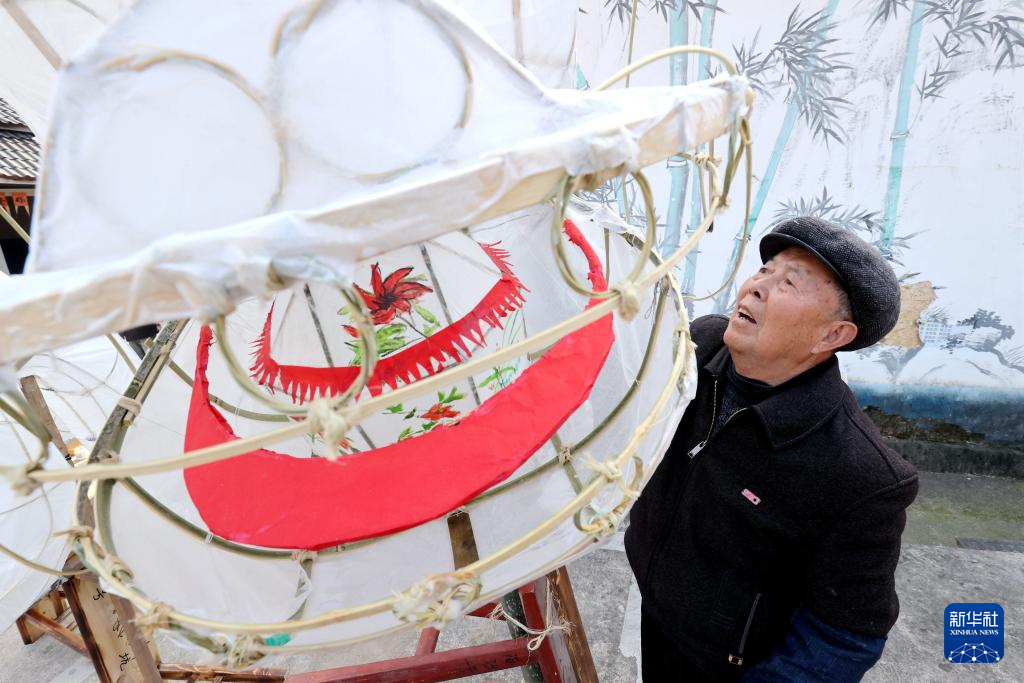 1月16日,浙江省湖州市德清縣莫干山鎮(zhèn)筏頭村村民在制作龍燈。