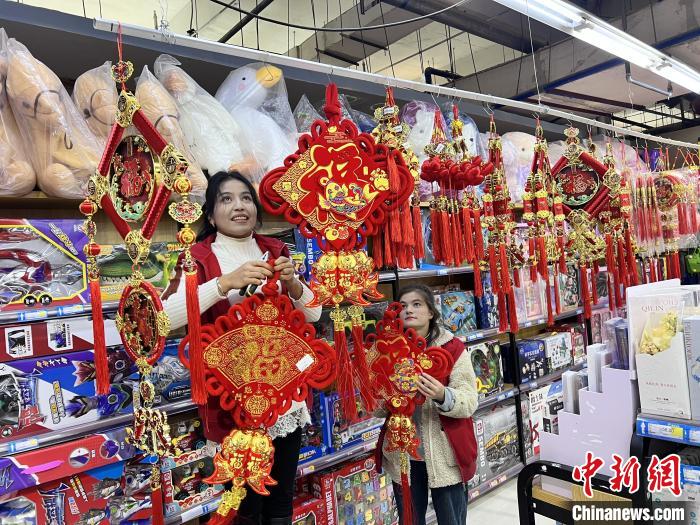 春節(jié)臨近,新疆阿圖什市的大街小巷年味濃。采購年貨正當(dāng)時,瓜果蔬果、新春掛件等年貨紛紛被各大商超上架,供市民采購。