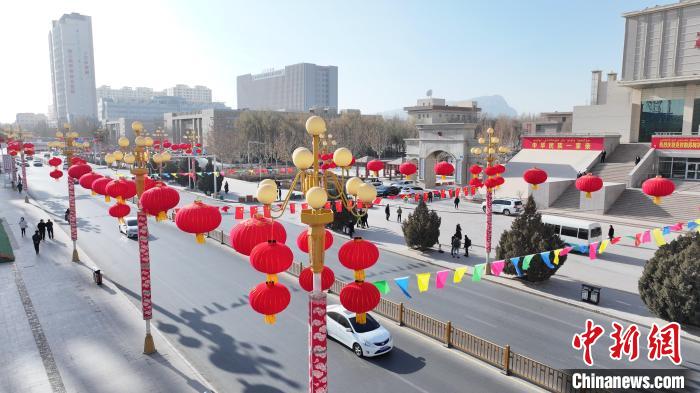 阿圖什市人民廣場主干道已經(jīng)張燈結(jié)彩,一派喜氣之景。張峰 攝