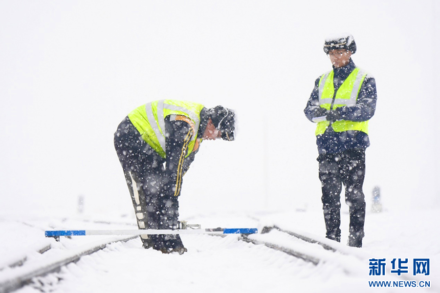 1月16日,在西安市臨潼區(qū)新豐鎮(zhèn)編組站,“鋼軌醫(yī)生”用道尺檢查線路幾何尺寸。新華網(wǎng)發(fā) 喬小虎 攝