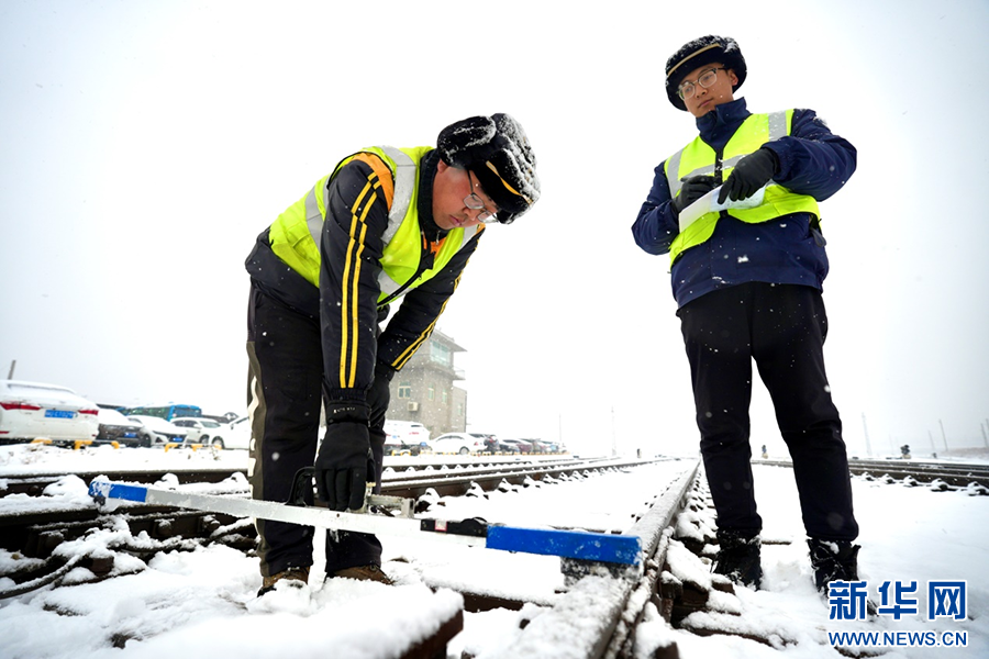1月16日,在西安市臨潼區(qū)新豐鎮(zhèn)編組站,“鋼軌醫(yī)生”用道尺檢查線(xiàn)路幾何尺寸。新華網(wǎng)發(fā) 喬小虎 攝