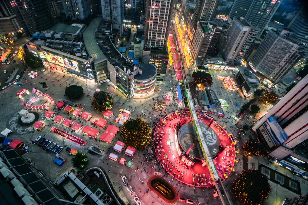 2024重慶火鍋年歡節(jié)吸引眾多消費(fèi)者參與(無(wú)人機(jī)照片)。(尹詩(shī)語(yǔ) 攝)