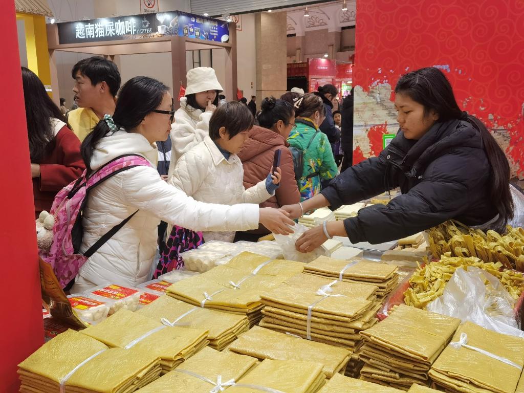 消費(fèi)者在昆明新春購(gòu)物博覽會(huì)現(xiàn)場(chǎng)選購(gòu)年貨。新華社記者黃韜銘 攝