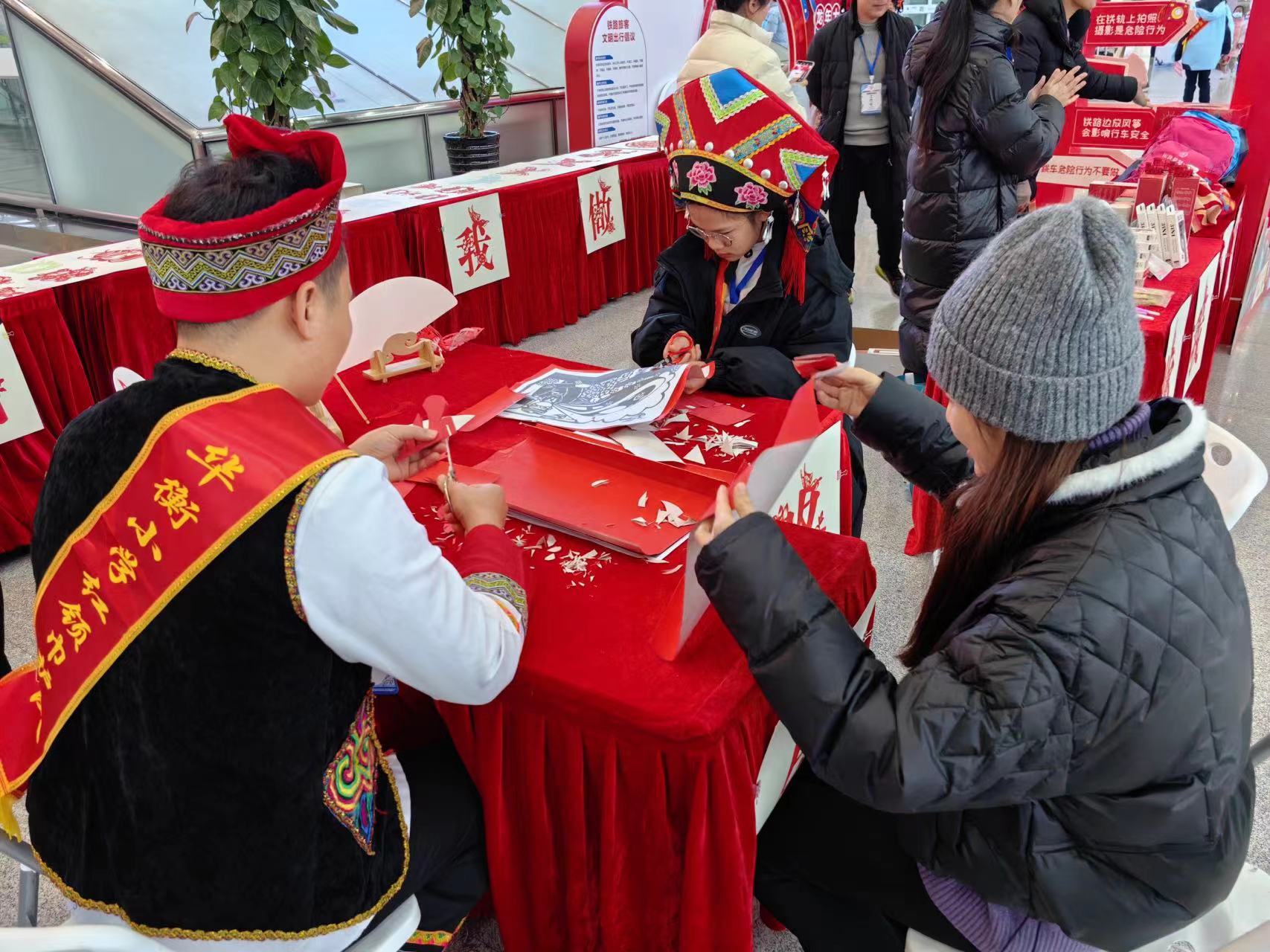 圖為旅客參與非遺剪紙活動(dòng)。