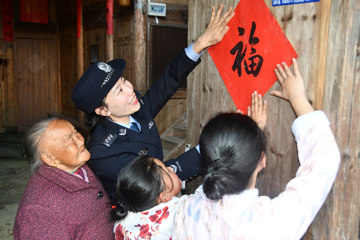 春節(jié)臨近,福建省壽寧縣公安局下黨派出所民警走進(jìn)轄區(qū),為獨(dú)居老人送上生活物資,幫助他們與在外務(wù)工的親人接通視頻通話,并送上新春祝福。