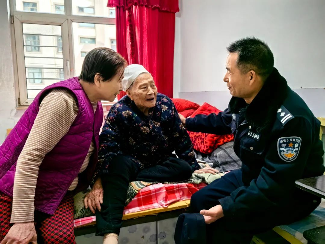 圖為民警王剛來(lái)到95歲的魏大娘家中進(jìn)行春節(jié)慰問,并提供便民服務(wù)。