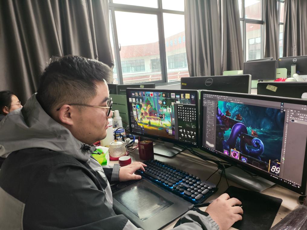 8年前,從職業(yè)院校畢業(yè)后的熊鵬飛,并沒有按照家里的規(guī)劃成為工地施工員,而是選擇被家里人認(rèn)為貪玩的游戲行業(yè),主要負(fù)責(zé)游戲場景設(shè)計(jì)。“起初家里并不理解,認(rèn)為我不務(wù)正業(yè),天天‘泡’在電腦上?!毙荠i飛說。