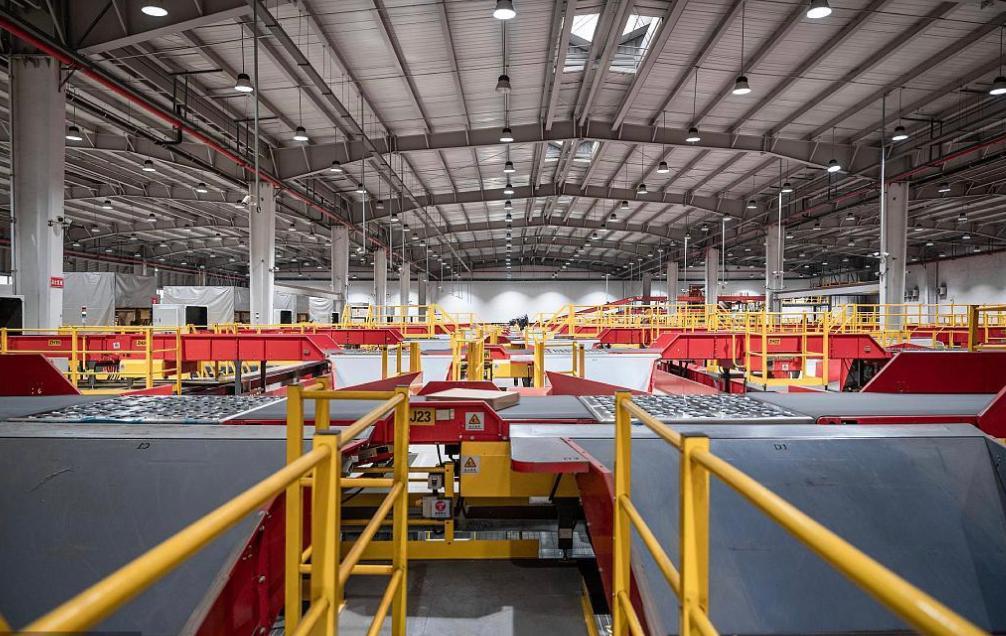 圖為江西萬佶智慧物流產(chǎn)業(yè)園內(nèi)的自動分揀設(shè)備。新華社發(fā)(肖振華攝)