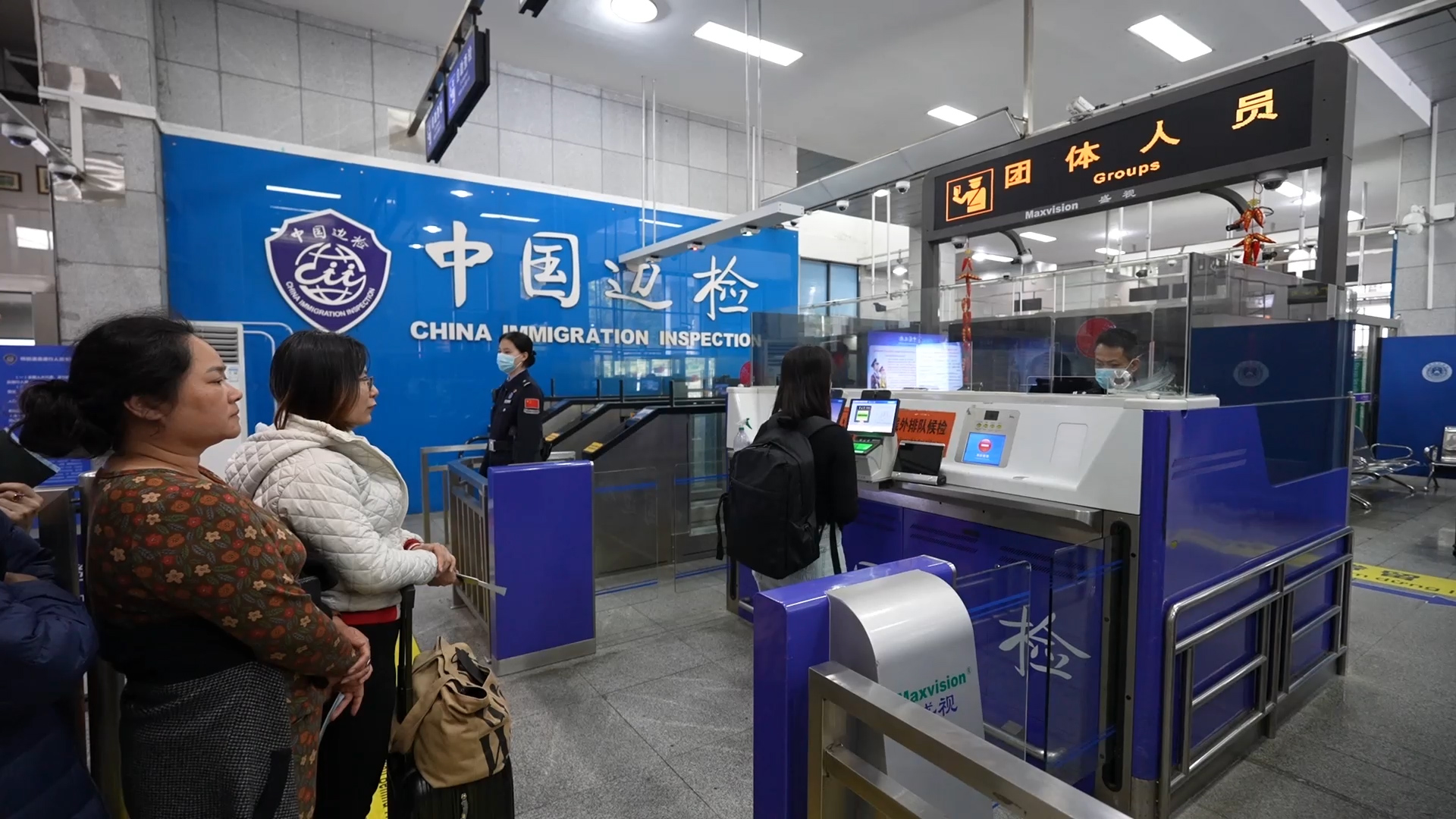 圖為歸國旅客正在進(jìn)行出入境查驗(yàn)。陳榮佳 攝