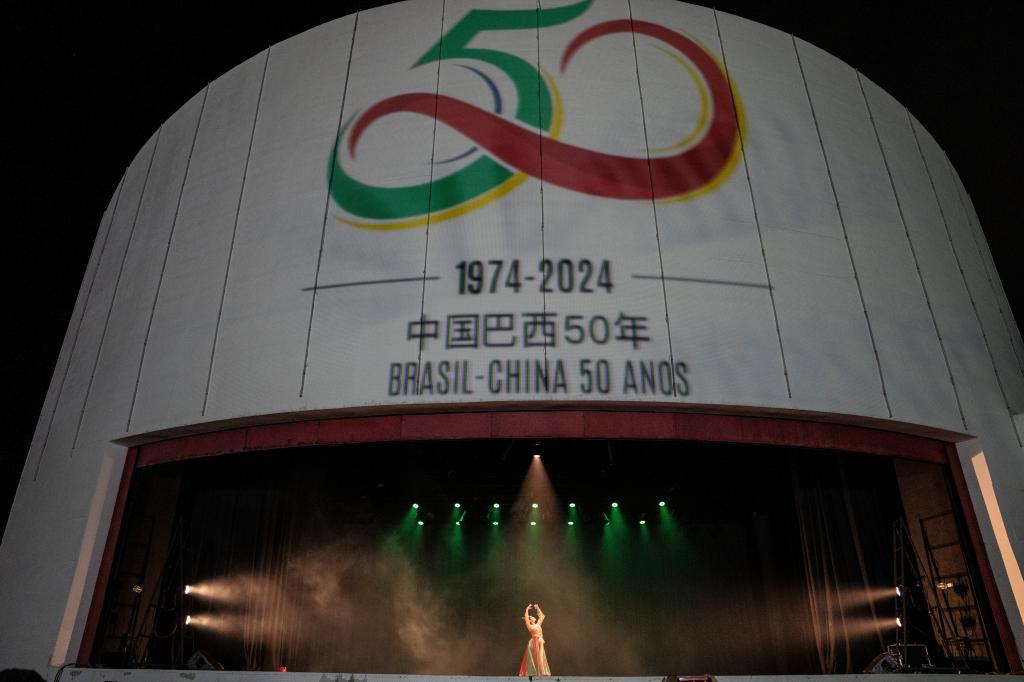 演出過后,五星紅旗、巴西國旗依次亮起,中巴建交50周年的標(biāo)識出現(xiàn)在觀眾們眼前。