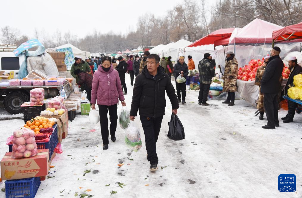 2月6日,人們?cè)诟拭C省臨夏州積石山縣石塬鎮(zhèn)肖紅坪村年俗集市選購(gòu)年貨。