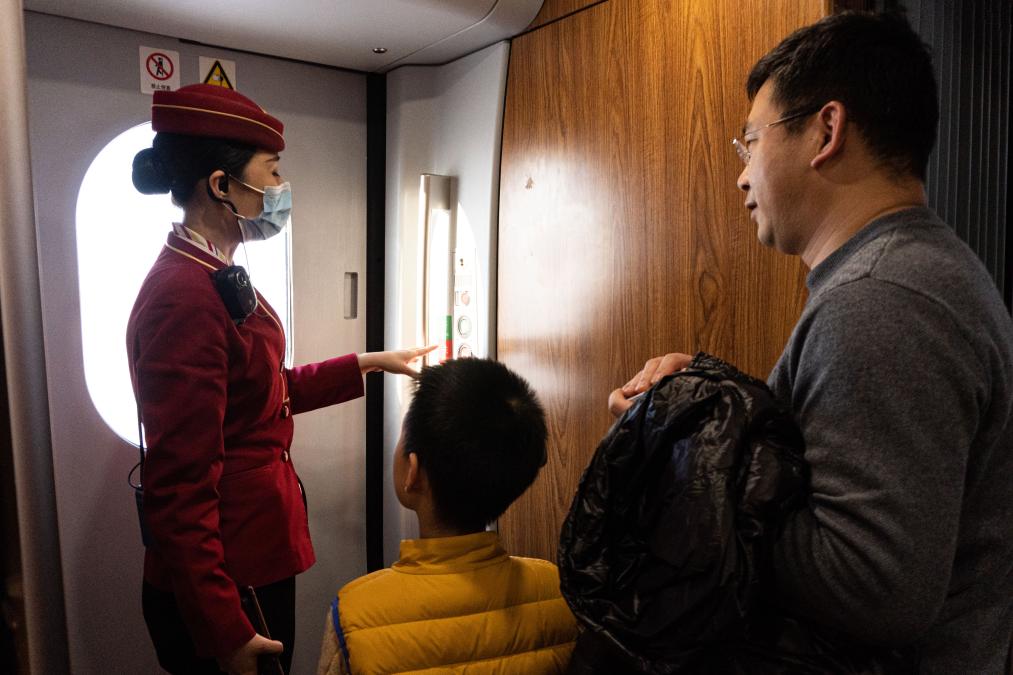 圖為列車長張林正在解答乘客問題。新華社記者 陳冬書 攝