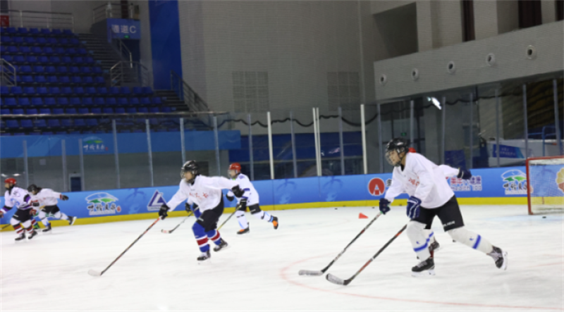 內(nèi)蒙古冰雪運動學校女子冰球隊隊員正在內(nèi)蒙古自治區(qū)冰上運動訓練中心進行備戰(zhàn)訓練。李新軍 攝