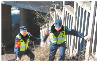線路巡查完返程路上,路邊一輛電動(dòng)三輪車側(cè)翻在道路左側(cè)土溝里,一側(cè)地上躺著一個(gè)人。徐鵬和民警韓壹朝立即下車救援幫助。原來陳大爺騎著電動(dòng)三輪車回家,因道路結(jié)冰,不小心連人帶車側(cè)翻到一旁的土溝里。民警確認(rèn)老人身體只受了點(diǎn)擦傷后,驅(qū)車將老人送回了家。