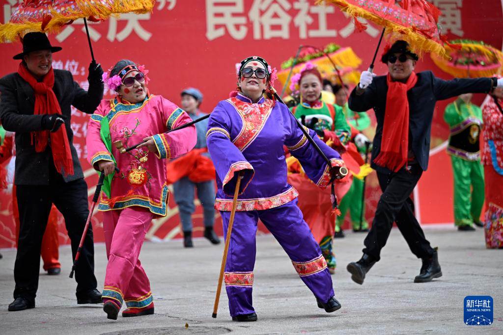 當(dāng)日,寧夏銀川市社火聯(lián)賽首場比賽在興慶區(qū)光明廣場舉行。來自銀川市興慶區(qū)、賀蘭縣的多支社火隊為市民獻上秧歌、舞龍、舞獅等傳統(tǒng)社火項目,喜迎元宵佳節(jié)的到來。