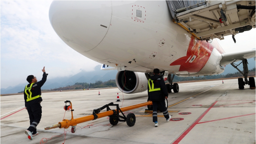 2024年2月16日,重慶,機(jī)場(chǎng)員工堅(jiān)守崗位,為旅客春運(yùn)返程保駕護(hù)航