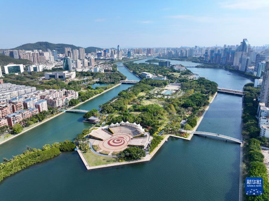 這是1月24日拍攝的廈門筼筜湖白鷺洲公園及周邊城市景觀(無人機照片)。新華社記者 姜克紅 攝