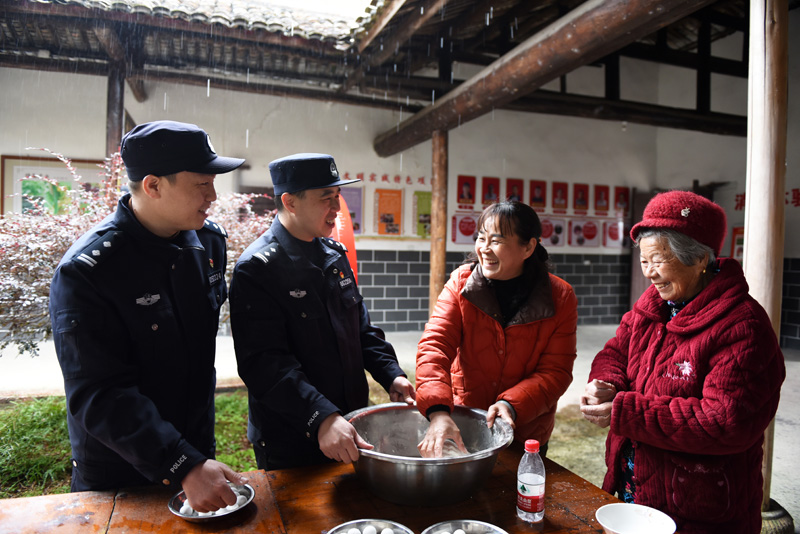 元宵節(jié)前夕,江西省分宜縣公安局組織社區(qū)民警走進(jìn)轄區(qū)開展“警民慶元宵 情暖夕陽紅”主題關(guān)愛活動。民警和老人們一起動手包湯圓、聊家常,暢談元宵習(xí)俗趣事,宣傳防火、防盜、防詐騙等安全防范常識,讓群眾感受到濃濃的團(tuán)圓之情。圖為民警與轄區(qū)老人一起包湯圓話安全,共迎元宵佳節(jié)。