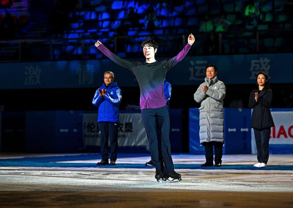 在花樣滑冰的收官之戰(zhàn)中,金博洋成功衛(wèi)冕男子單人滑冠軍。他用“老當(dāng)益壯”形容自己的發(fā)揮?!皩?duì)我來說,26歲還能保持這樣一個(gè)狀態(tài),非常非常難,每天都是把牙咬碎了,頂著去練的。能夠鼓勵(lì)自己堅(jiān)持滑下來,我也非常開心?!?/p>