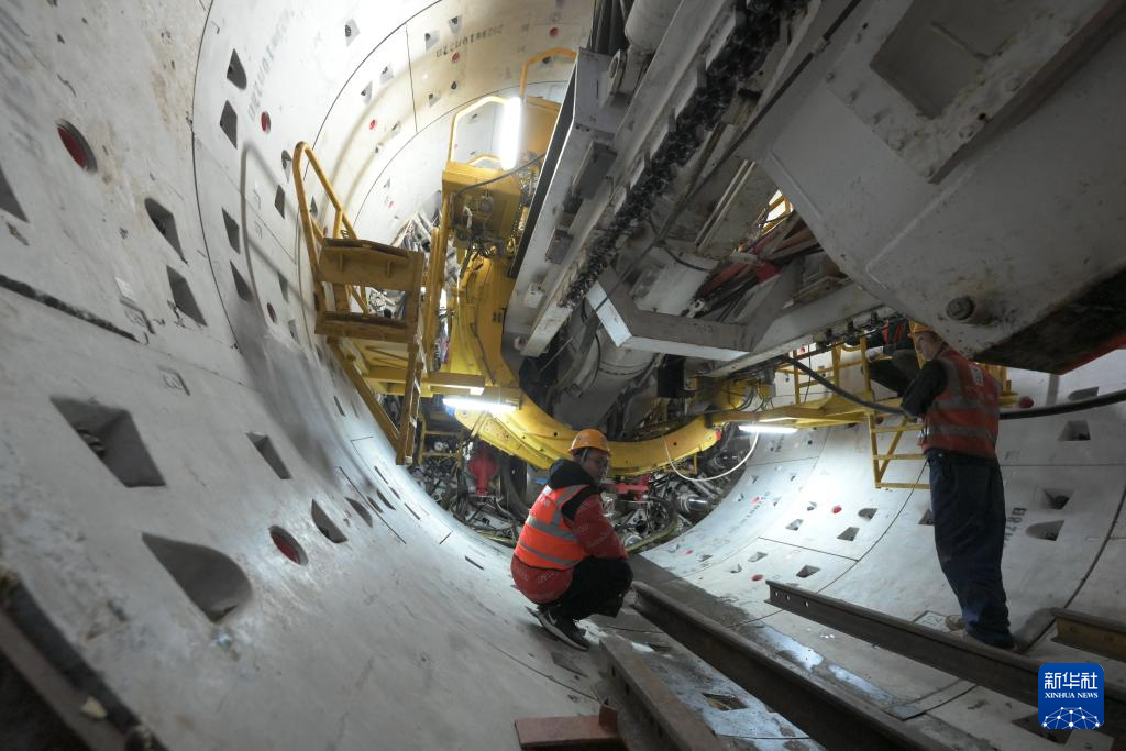 2月24日,施工人員在福州地鐵2號線東延線一期工程下德站“海峽號”盾構機現(xiàn)場作業(yè)。