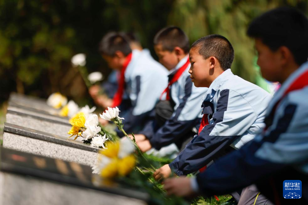 4月2日,在貴州省黔東南苗族侗族自治州施秉縣白垛鄉(xiāng),學生向紅軍烈士墓獻花。