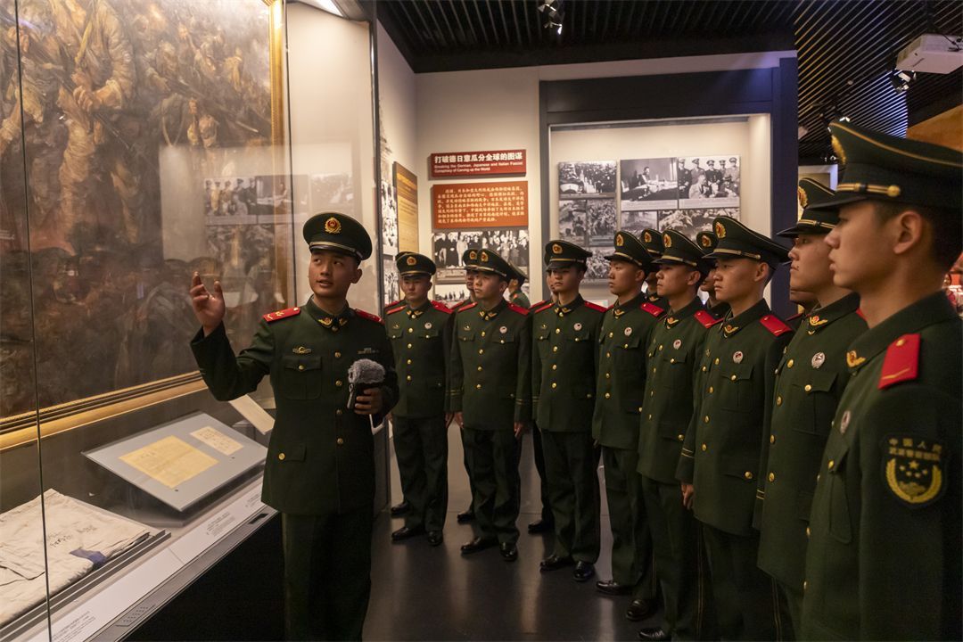 “在迎擊敵人的最后一次反撲中,劉老莊八十二烈士與敵人展開白刃戰(zhàn)……”在中國人民抗日戰(zhàn)爭紀念館中,武警北京總隊某支隊“紅肩章”理論宣講隊成員肖志尹正在向戰(zhàn)友們講述著他整理的英雄先烈的故事,將自身感受分享給大家,點燃官兵矢志奮斗強軍的熱情。