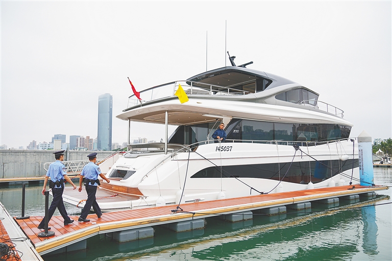 “這是本屆消博會首艘進(jìn)境游艇展品,貨值超2800萬元?!焙?诟酆jP(guān)相關(guān)負(fù)責(zé)人表示,海關(guān)在通關(guān)現(xiàn)場設(shè)立“消博會通關(guān)綠色通道”,建立全天候服務(wù)機(jī)制,接受參展企業(yè)預(yù)約通關(guān),推出“隨到隨驗(yàn)”等便利通關(guān)措施,保障進(jìn)境展品實(shí)現(xiàn)“零延時(shí)”通關(guān)。
