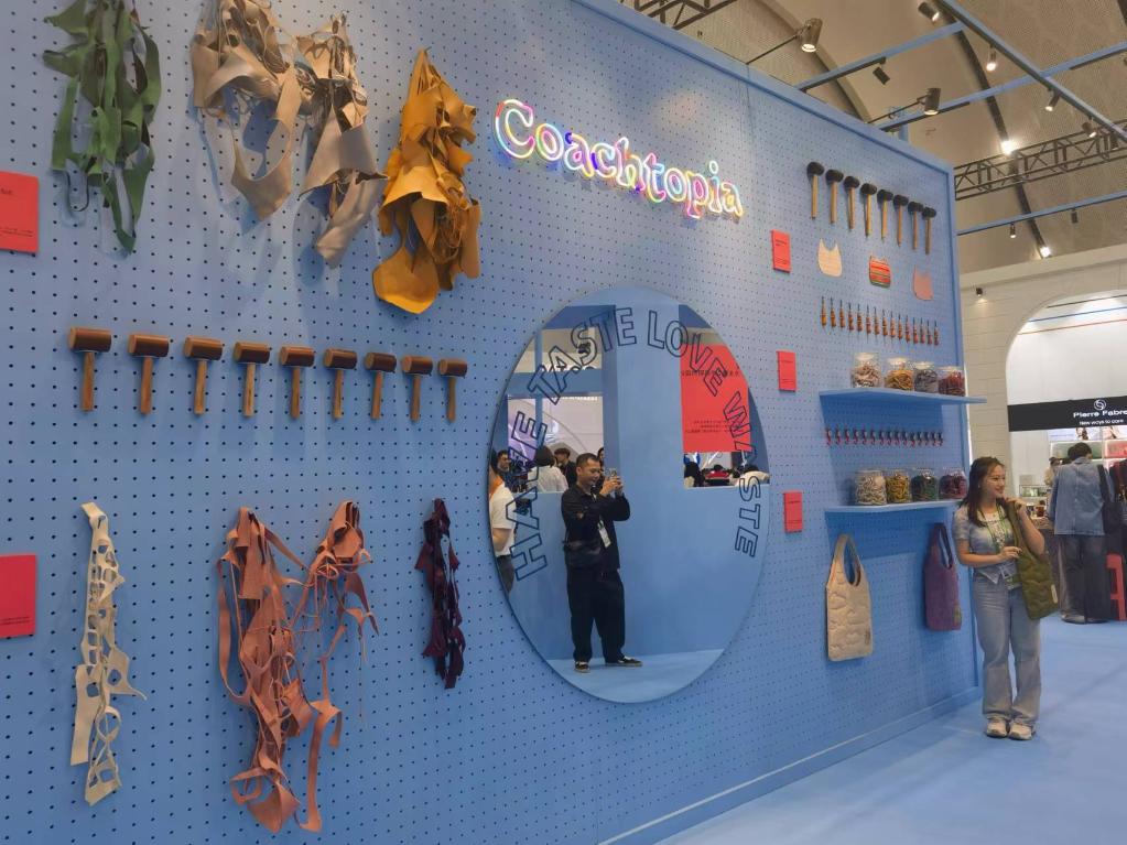 “蔻馳之城”展臺(tái)展示其循環(huán)工藝。新華社記者趙葉蘋攝