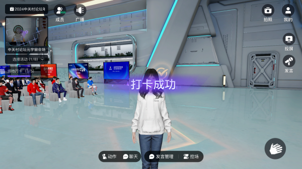 今年,中關(guān)村論壇元宇宙會(huì)場(chǎng)還新增了互動(dòng)打卡任務(wù),將多個(gè)打卡點(diǎn)融入其中,觀(guān)眾可解鎖隱藏在元宇宙會(huì)場(chǎng)中的各種互動(dòng)驚喜,獲得沉浸式趣味互動(dòng)體驗(yàn)。同時(shí),元宇宙會(huì)場(chǎng)也將成為本屆論壇的直播平臺(tái)之一,觀(guān)眾可在元宇宙會(huì)場(chǎng)內(nèi)觀(guān)看論壇所有場(chǎng)次的活動(dòng)直播。