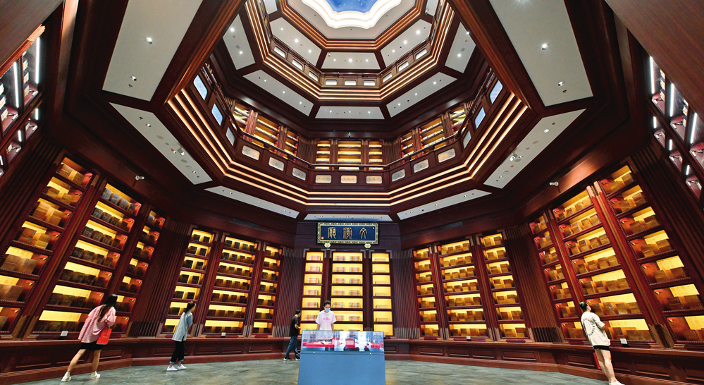 觀眾在位于北京的中國(guó)國(guó)家版本館中央總館文瀚廳內(nèi)參觀(2022年7月30日攝)李鑫攝 / 本刊