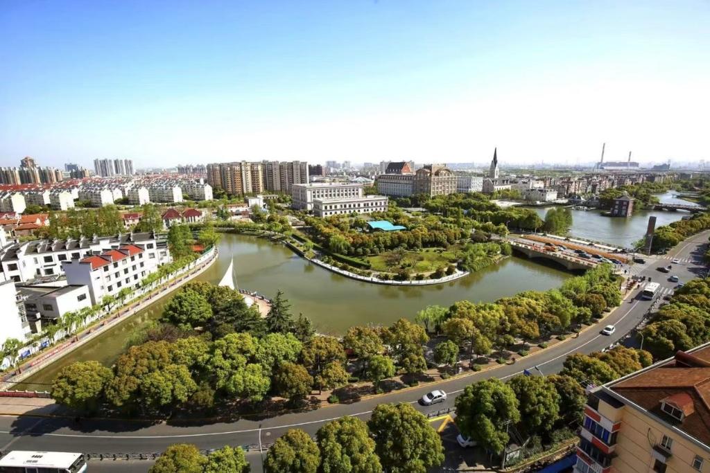 空中俯瞰高橋,長(zhǎng)江之濱的濱江森林公園和黃浦江畔的新材料科創(chuàng)園交相輝映。萬(wàn)里長(zhǎng)江口,千年古鎮(zhèn)高橋正在高質(zhì)量發(fā)展中煥發(fā)勃勃生機(jī)。