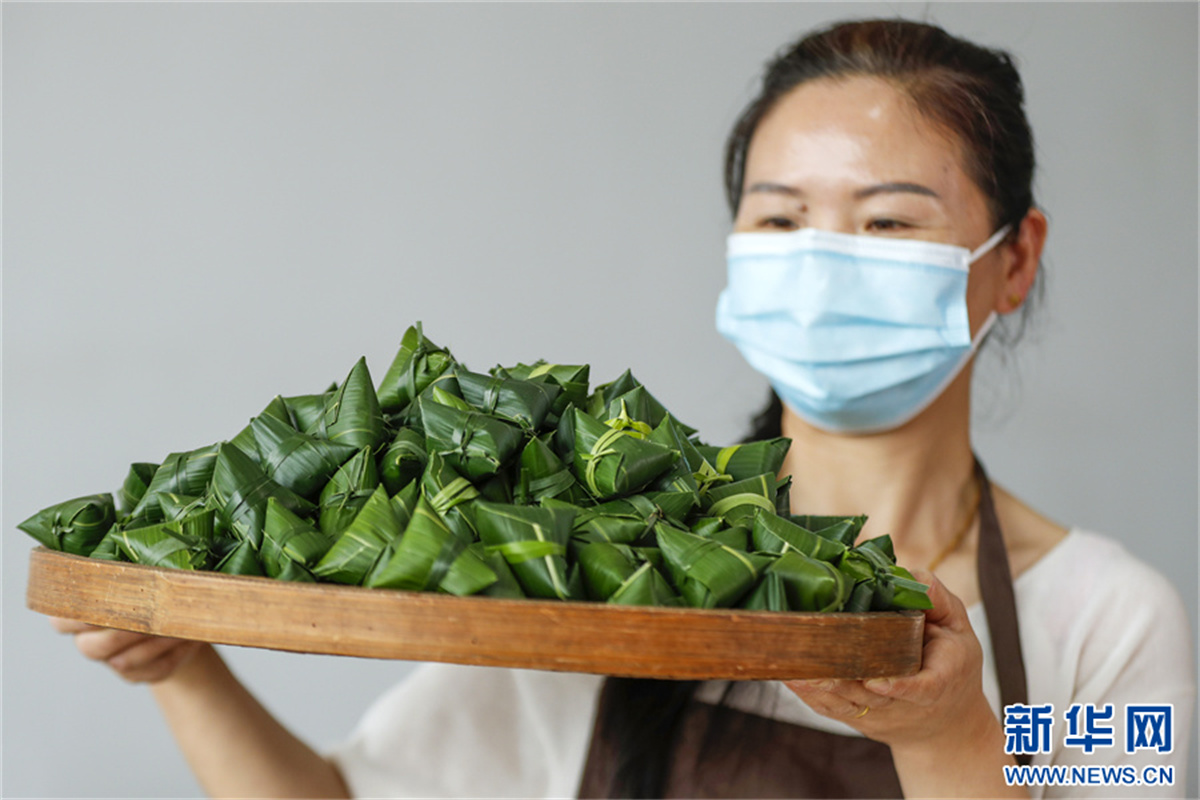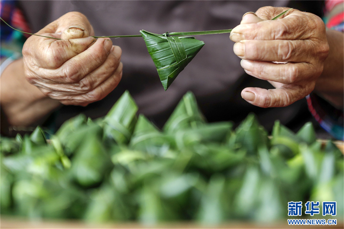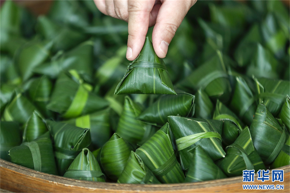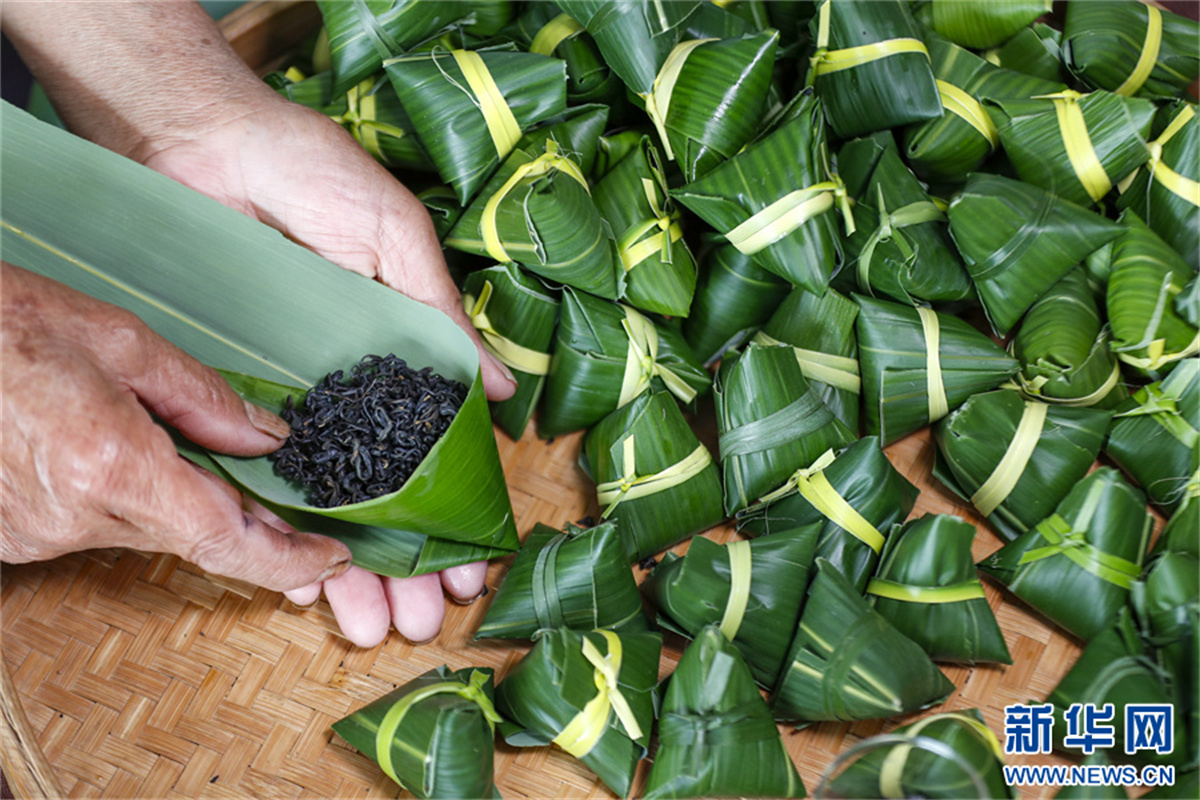 端午臨近,在安徽省黃山市祁門縣古溪鄉(xiāng)際源村,茶工以祁門紅茶為“餡料”,用傳統(tǒng)包粽子的方法,純手工制作“粽茶”?!棒詹琛毙∏闪岘嚕莩鰜淼牟铚?,既有箬葉香,又有紅茶香,好看又好喝的“粽茶”,深受消費(fèi)者的喜愛。新華網(wǎng)發(fā)(施亞磊 攝)