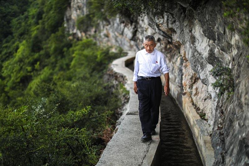 他帶領村民,歷時30余年,在懸崖絕壁上開鑿出一條主渠長7200米、支渠長2200米的“生命渠”;他用實干兌現(xiàn)誓言,為改善山區(qū)群眾用水條件、實現(xiàn)脫貧致富作出突出貢獻;他一心為民、埋頭苦干、百折不撓……