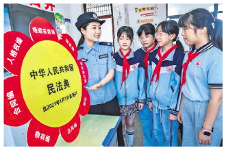 五月十四日,安徽省含山縣司法局普法工作者走進安徽師范大學附屬含山實驗小學開展“民法典進校園 法律保駕護航”主題教育活動。 本報通訊員 歐宗濤 攝