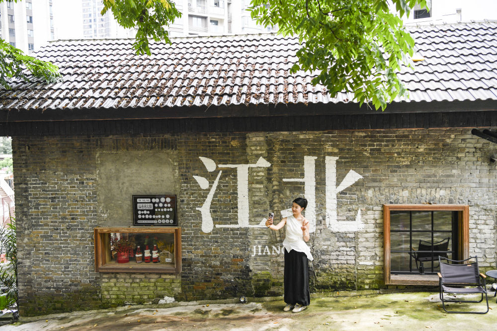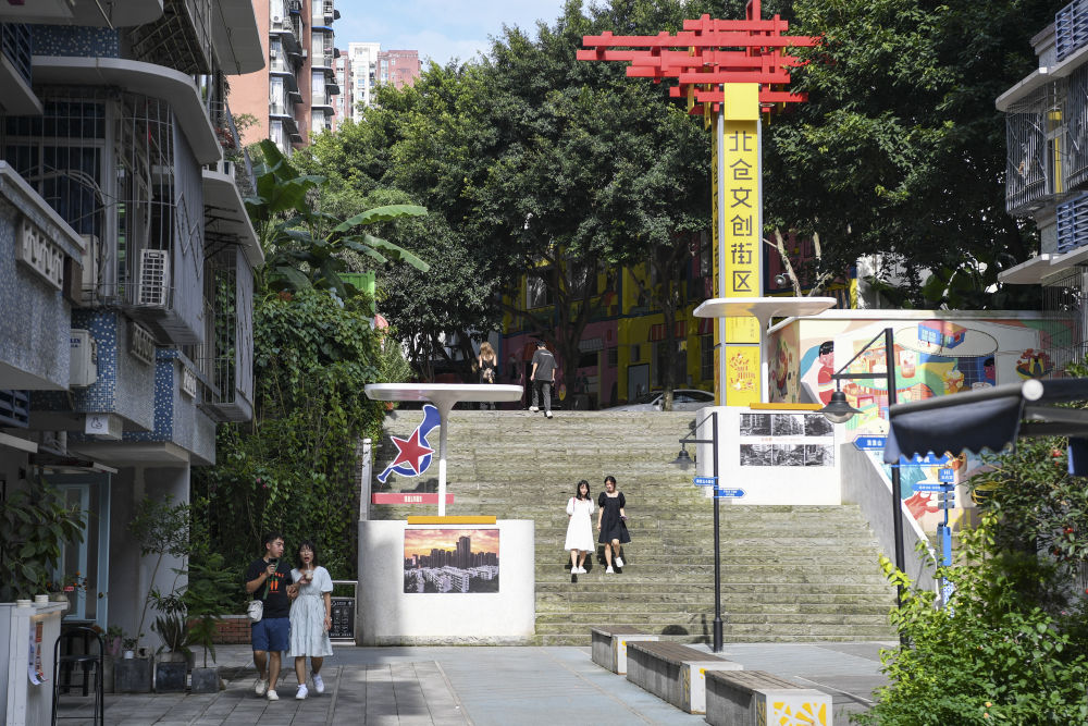 ↑7月15日,游客在重慶市江北區(qū)北倉文創(chuàng)街區(qū)游覽。