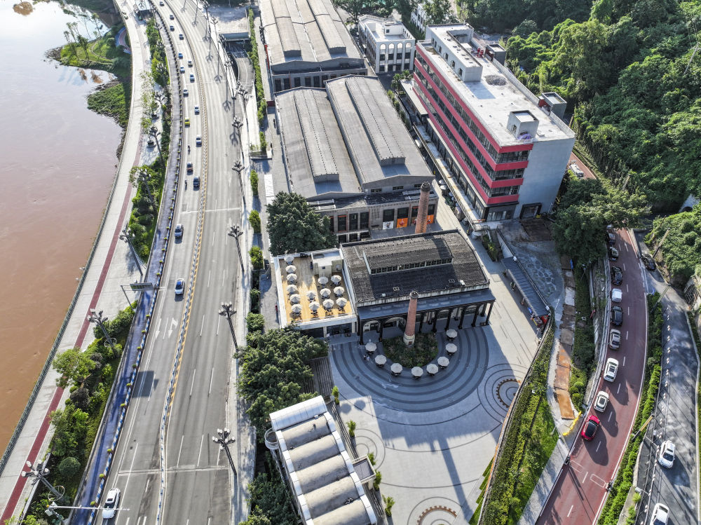 ↑這是7月15日拍攝的重慶市江北區(qū)北倉文創(chuàng)街區(qū)一帶景象(無人機(jī)照片)。