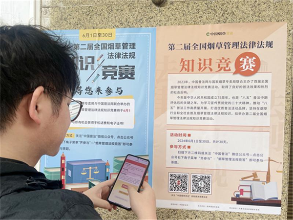 為推動(dòng)“八五”普法走深走實(shí),浙江省溫州市煙草專賣局以全國(guó)煙草管理法律法規(guī)知識(shí)競(jìng)賽活動(dòng)為契機(jī),創(chuàng)新普法宣傳形式,打造員工、零售戶、消費(fèi)者共同參與的立體化普法矩陣,持續(xù)提升普法“輻射面”,繪好普法“風(fēng)景線”,在全市掀起煙草專賣法律法規(guī)學(xué)習(xí)活動(dòng)熱潮,助力營(yíng)造全社會(huì)尊法學(xué)法守法用法的良好法治氛圍。