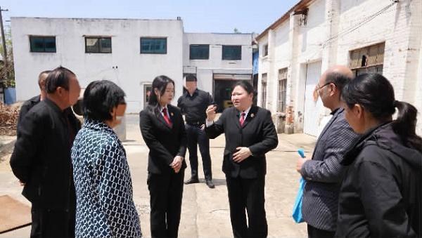 圖為今年四月二十六日,江蘇省揚(yáng)州市江都區(qū)人民法院邵伯人民法庭副庭長(zhǎng)胡買梅(右三)就一起排除妨害糾紛案件向當(dāng)事人釋法明理。