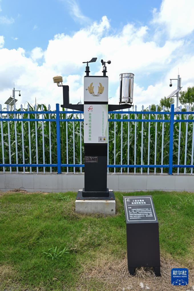這是河南省新鄉(xiāng)市平原示范區(qū)高標(biāo)準(zhǔn)農(nóng)田里的六情預(yù)警監(jiān)測(cè)站(7月29日攝)。監(jiān)測(cè)站實(shí)時(shí)監(jiān)測(cè)苗情、災(zāi)情、病情、蟲(chóng)情、墑情和肥情。新華社記者 李鑫 攝