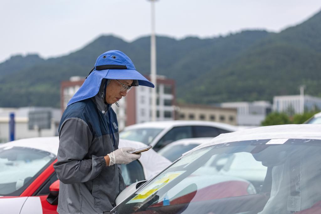 在重慶國際物流樞紐園區(qū),工作人員在重慶鐵路口岸對進(jìn)口整車進(jìn)行檢查。新華社記者 黃偉 攝