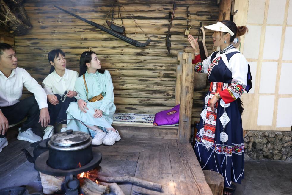 7月31日,游客在麗江市玉龍納西族自治縣玉湖村的一處納西族村民家中體驗(yàn)當(dāng)?shù)靥厣幕?。新華社記者 呂帥 攝