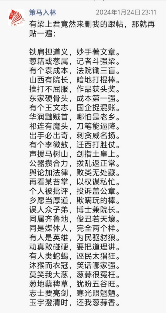 以上三帖,分別為天津8·12濱海新區(qū)爆炸事故“頭七”、山東平度平邑發(fā)生傷民案件、聲援鐵肩擔(dān)道義記者等所發(fā)。多年來,一些案事件頻頻發(fā)生,源于當(dāng)事地方或部門瀆職不作為或?yàn)E權(quán)亂作為,造成嚴(yán)重后果,令人觸目驚心。正氣感召,責(zé)無旁貸,匕首投槍,敢于斗爭。