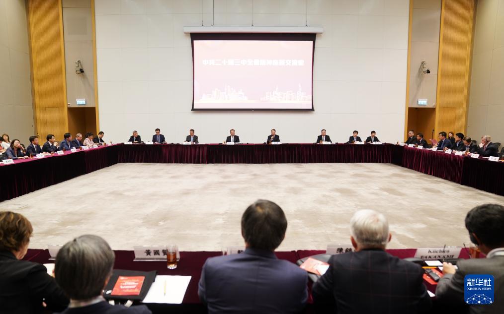 8月27日,學(xué)習(xí)貫徹黨的二十屆三中全會精神中央宣講團在香港特別行政區(qū)與香港工商界、創(chuàng)科界代表舉行座談交流。新華社記者 王申 攝