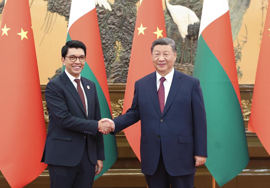 9月6日下午,國家主席習近平在北京人民大會堂會見來華出席中非合作論壇北京峰會的馬達加斯加總統(tǒng)拉喬利納。