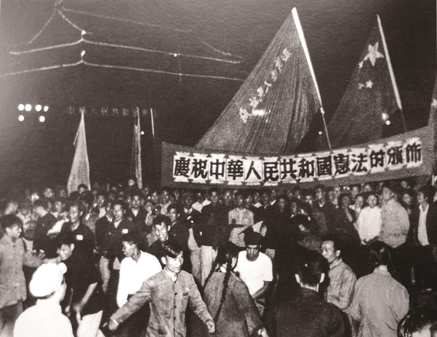 1954年9月21日,首都群眾慶?!吨腥A人民共和國(guó)憲法》頒布。 新華社發(fā)