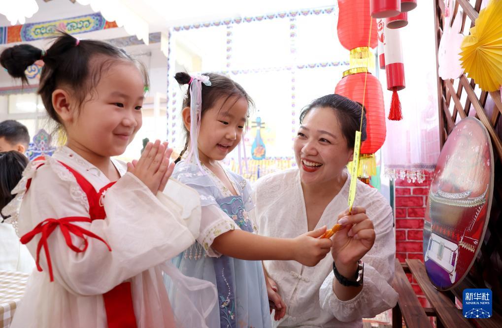 當(dāng)日,河北省石家莊市藁城區(qū)通安幼兒園開展迎中秋幼兒民俗主題活動(dòng),孩子們?cè)诶蠋煹闹笇?dǎo)下做月餅、猜燈謎,感受傳統(tǒng)民俗的魅力。
