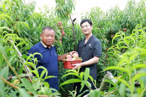 2023年8月,江蘇省灌南縣人民法院灌河流域環(huán)境資源法庭副庭長高濤(右)回訪本案當(dāng)事人,正遇到當(dāng)事人的桃子豐收。姜拼并 攝