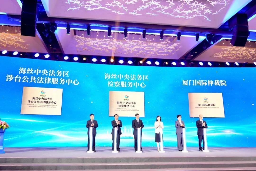 開(kāi)幕式上,“海絲中央法務(wù)區(qū)檢察服務(wù)中心”“海絲中央法務(wù)區(qū)涉臺(tái)公共法律服務(wù)中心”“廈門(mén)國(guó)際仲裁院”揭牌;海絲中央法務(wù)區(qū)2024年度十大成果發(fā)布:海絲中央法務(wù)區(qū)成為法治化營(yíng)商環(huán)境“新名片”、法商融合服務(wù)體系加速完善、辦理一批具有示范效應(yīng)的國(guó)際商事海事典型案件、搭建涉臺(tái)法律服務(wù)新矩陣、警安法務(wù)科技產(chǎn)業(yè)成為法務(wù)區(qū)發(fā)展新引擎、知識(shí)產(chǎn)權(quán)保護(hù)應(yīng)用體系拓維升級(jí)、域外法查明服務(wù)能力實(shí)現(xiàn)新突破、全國(guó)首個(gè)反壟斷審查合規(guī)輔導(dǎo)中心落地運(yùn)行、設(shè)立全國(guó)首個(gè)檢察影視孵化示范平臺(tái)、打造涉外法治人才培育基地;2024年“一帶一路”法律服務(wù)典型案例發(fā)布。