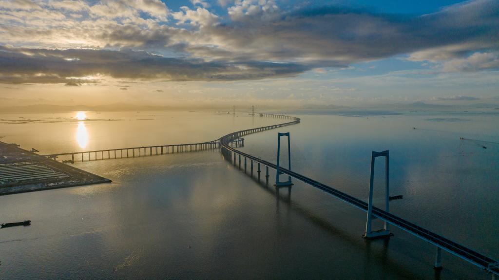 6月27日,沐浴在晨曦中的深中通道(無(wú)人機(jī)照片)。新華社記者毛思倩 攝